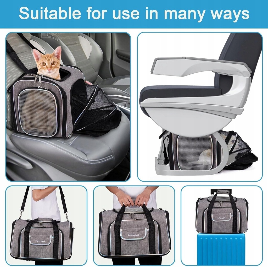 ⭐Torba podróżna dla kota, 4 boki, rozszerzalny transporter dla zwierząt, linia lotnicza, miękki transporter dla zwierząt zatwierdzony przez linie lotnicze, składana miękka torba transportowa dla kotów, psów i małych zwierząt, wyjmowana podkładka z polaru⭐