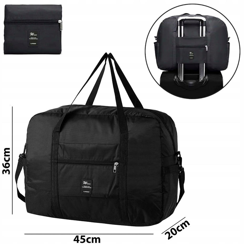 - Jakie są jej wymiary? Wymiary torby podróżnej to 36 x 45 x 20 cm, natomiast po złożeniu jej wymiary to zaledwie 25 x 18 x 5 cm.
