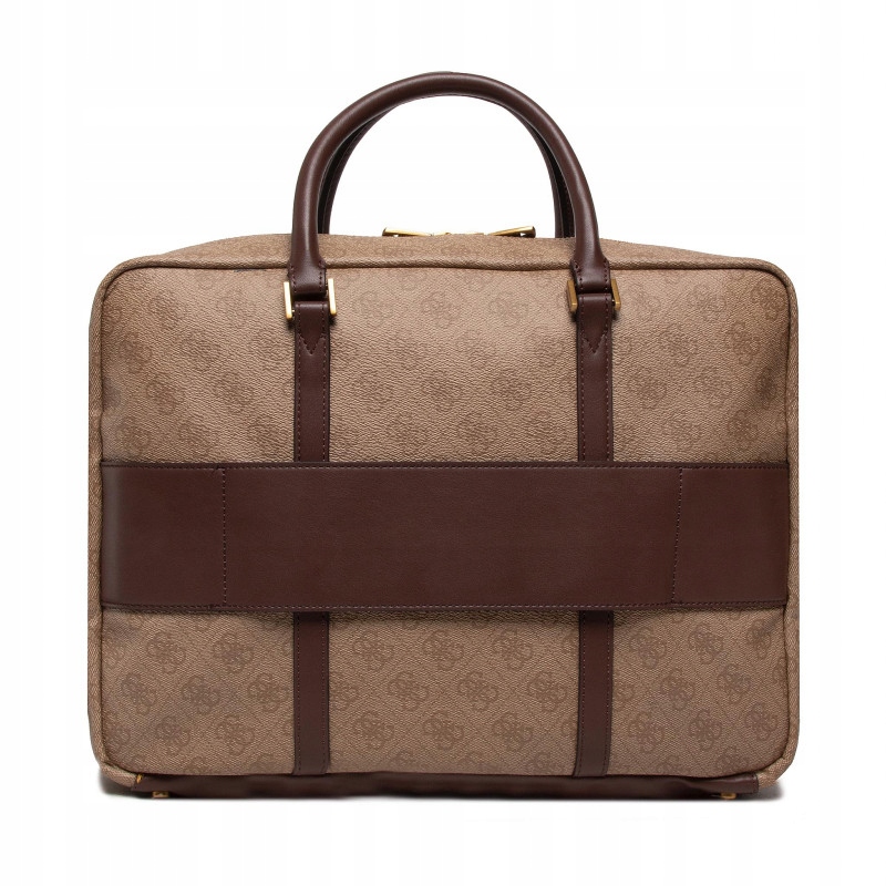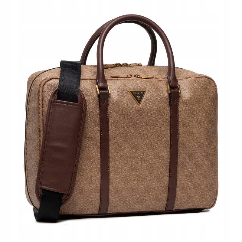 Ta idealna torba na laptopa, sygnowana logo GUESS, w kolorze ciemnego brązu. Pasująca do miejskiej stylizacji. Elegancka i praktyczna, możną ją nosić w ręku lub na ramieniu.