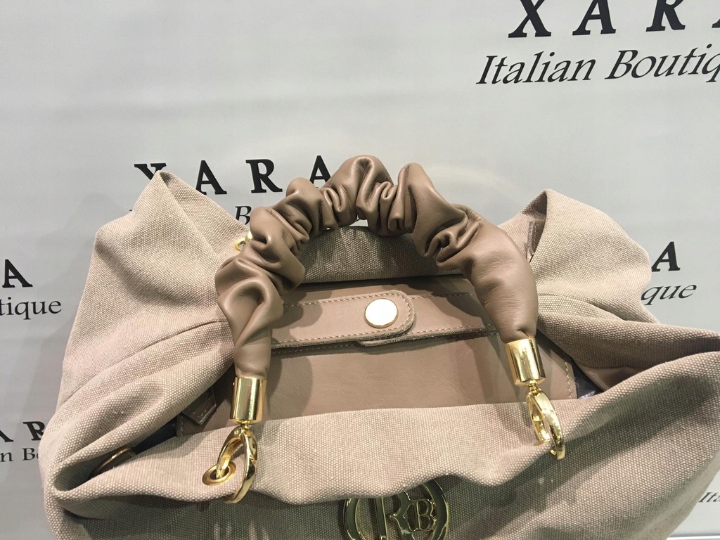 Duża pojemna, ładnie wykonana z beżowej mocnej tkaniny