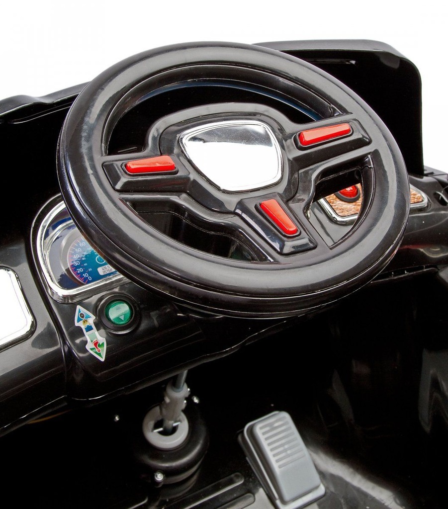 Dane techniczne Przedział wiekowy 3 8 lat Dostępne kolory Black, Red, White Wymiary dł. 113 cm/ szer. 67 cm/ wys. 54 cm Wymiary siedziska 23×20 cm Waga 15,5 kg Limit wagowy Max. do 30 kg Zasilanie 2x silnik 6V (łącznie 30W), 2x akumulator (4,5Ah 6V) Wymiary opakowania 120 x 63 x 34 cm