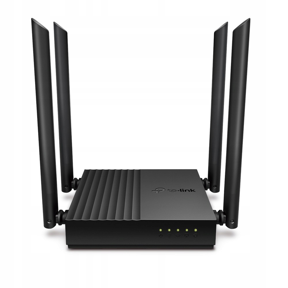 TP-Link Archer C64. Częstotliwość Wi-Fi: Dual-band (2.4 GHz/5 GHz), Podstawowy standard Wi-Fi: Wi-Fi 5 (802.11ac), WLAN wskaźnik przesyłu danych (max): 1200 Mbit/s. Typ interfejsu Ethernet LAN: Gigabit Ethernet, Standardy komunikacyjne: IEEE 802.1x, Czułość odbiorcy: 5 GHz: 11a 6Mbps:-95dBm 11a 54Mbps:-77dBm 11ac VHT20 MCS8:-71dBm 11ac VHT40 MCS9:-67dBm 11ac VHT80.... Szyfrowanie / bezpieczeństwo: WPA, WPA-Enterprise, WPA2, WPA2-Enterprise, WPA3, Zabezpieczenie firewall: SPI. Obsługiwane protokoły sieciowe: IPv4, IPv6. Typ produktu: Router biurkowy, Kolor produktu: Czarny