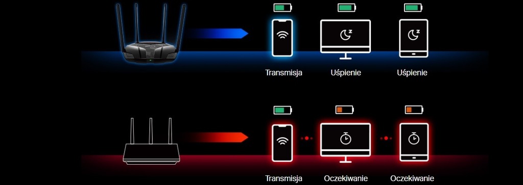 Standard ten reprezentuje szóstą generację sieci bezprzewodowych. Technologia wykorzystuje częstotliwości 2,4 Ghz oraz 5 GHz. Niekwestionowanym atutem takiego rozwiązania jest kapitalna szybkość połączenia nawet przy dużej liczbie urządzeń. Router, który pracuje w standardzie 802.11ax znajdzie szerokie zastosowanie zarówno w domu, jak i w biurze, zapewniając wygodę użytkowania na najwyższym poziomie.