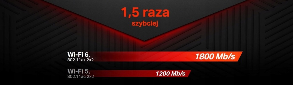 - Funkcje specjalne: Standardy bezprzewodowe Zgodność ze standardami 802.11ax/ac/a/b/g/n Prędkość transmisji 1201 Mb/s (5 GHz) + 574 Mb/s (2,4 GHz)