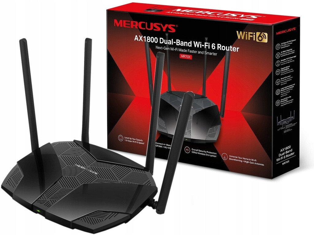 - Akcesoria w zestawie: Router MR70X Zasilacz Instrukcja szybkiej instalacji Kabel Ethernet RJ45