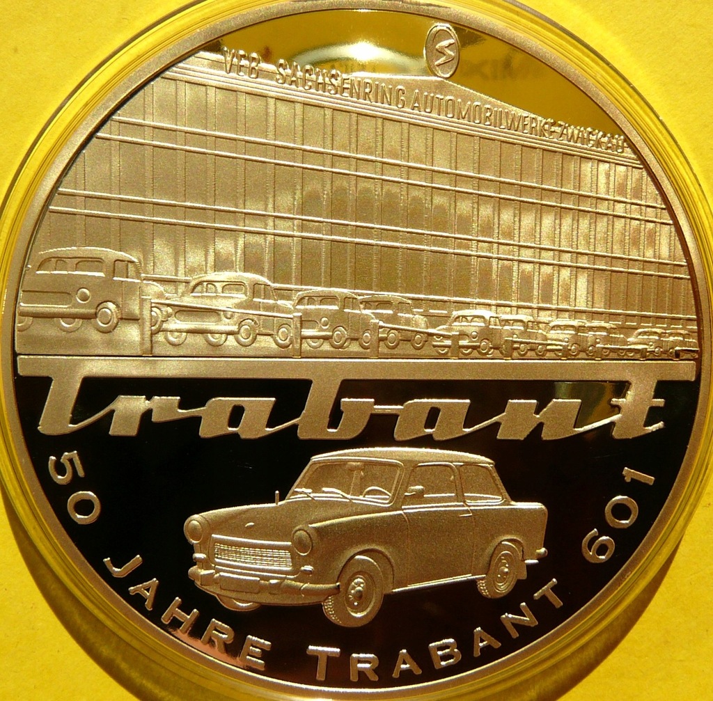 NA AUKCJI WYSTAWIANA JEST PRZEPIĘKNY JEDEN NUMIZMAT KOLEKCJONERSKI PLATEROWANY ZŁOTEM - TRABANT 601 K KULTOWE AUTO DDR 1964r - GIGANT - STEMPEL LUSTRZANY - MENNICZA - NA INNYCH AUKCJACH WYSTAWIAM NUMIZMATY Z TEJ SERII - ZAPRASZAM DO OGLĄDANIA
