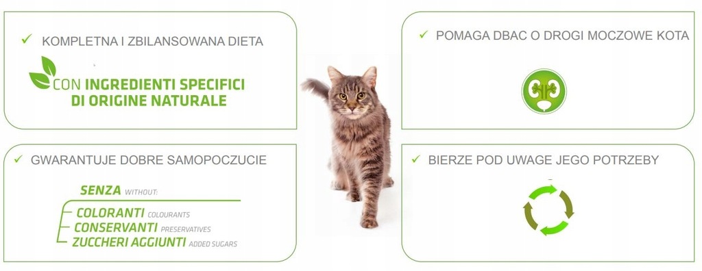Dodatkowo karma zawiera kwasy tłuszczowe Omega-3 oraz Omega-6, biotynę oraz cynk co sprawia, że kot ma piękną i błyszczącą sierść.