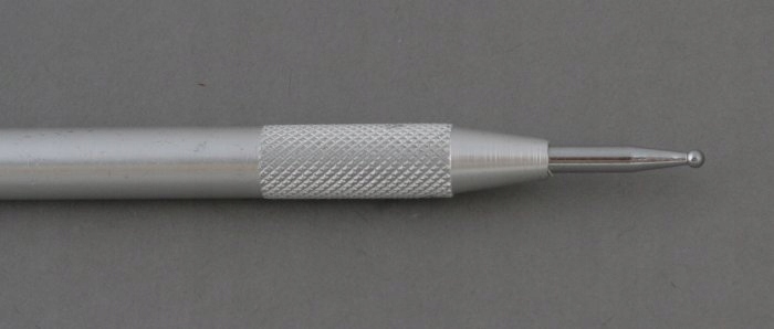 Narzędzie posiada aluminiową rączkę, stalowe końcówki, gładzik i kulkę 1,5mm.