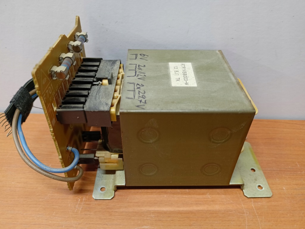Posiada pionową płytkę z 2 bezpiecznikami i taśmą z wyprowadzeniami z transformatora. Płytka demontuje się, można z niej zrezygnować przy montażu.