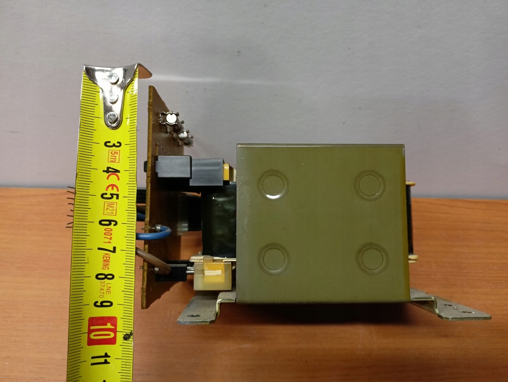 Transformator ma 7,5cm wysokości - zmieści się w niskiej obudowie. Wysokość z zapiętą płytką to 10cm.