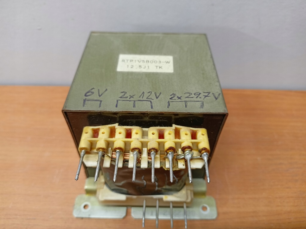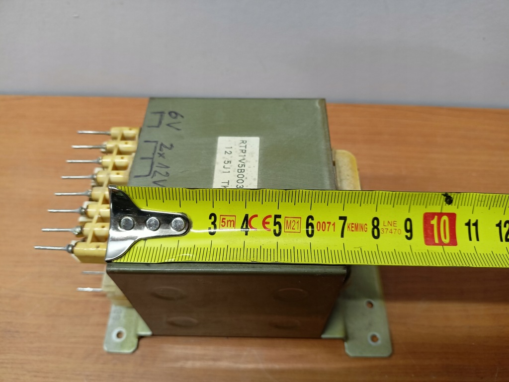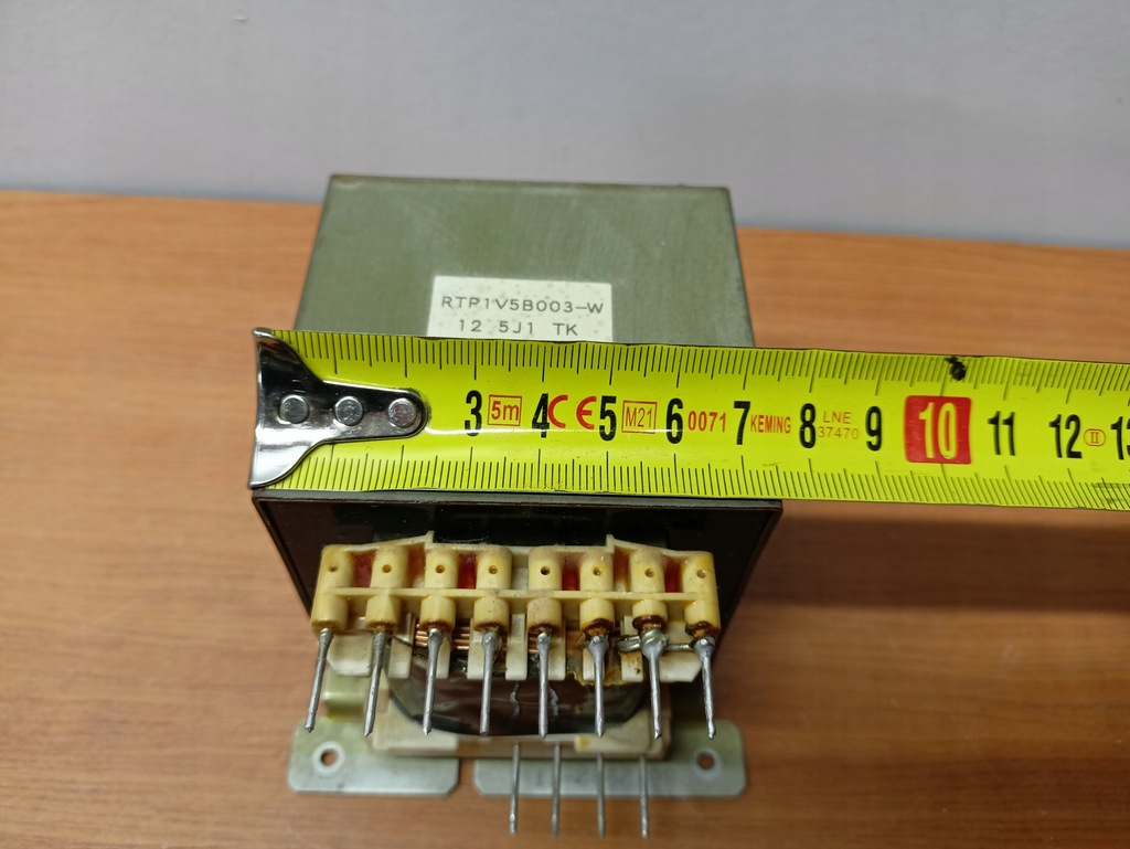 Sprawny transformator z demontażu. Podany pobór mocy wzmacniacza (technics), z którego został zdemontowany to 213W.