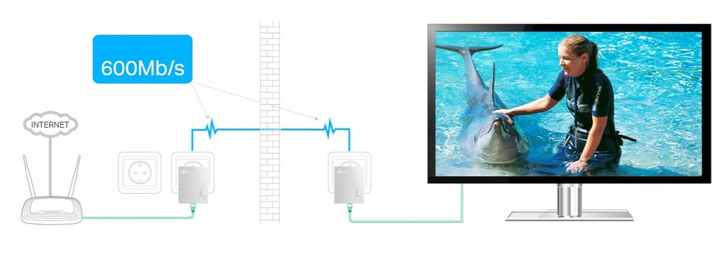 - Zgodność ze standardem HomePlug AV, wysoka prędkość transmisji danych w sieci elektrycznej - do 600Mb/s