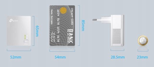Dzięki nowej, miniaturowej obudowie, transmitery TL-PA4010 są o wiele mniejsze niż wcześniejsze modele transmiterów sieciowych TP-LINK. Dzięki grubości wynoszącej jedynie 28,5mm oraz eleganckiej, białej obudowie, urządzenia podłączone do kontaktu są niemal niewidoczne.