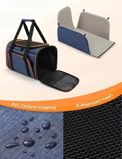 Wykonany z gumowej siatki i wojskowego korpusu oxford z prętami podtrzymującymi z włókna szklanego, wytrzymałymi zamkami błyskawicznymi, wyściełanymi podłogami, ten zatwierdzony przez linie lotnicze transporter jest wystarczająco wytrzymały, aby zapewnić bezpieczeństwo futrzanym przyjaciołom.