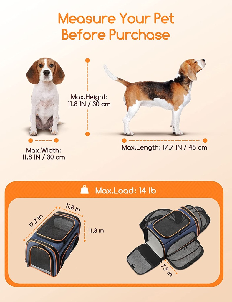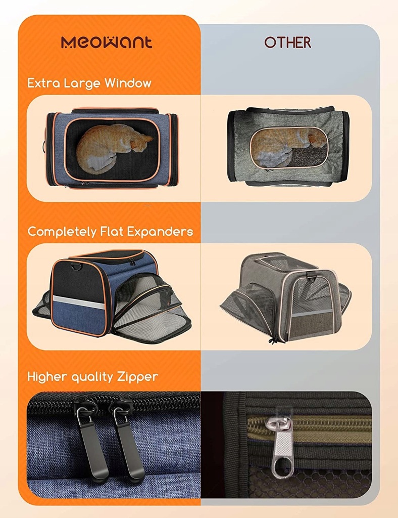 Wykonany z gumowej siatki i wojskowego korpusu oxford z prętami podtrzymującymi z włókna szklanego, wytrzymałymi zamkami błyskawicznymi, wyściełanymi podłogami, ten zatwierdzony przez linie lotnicze transporter jest wystarczająco wytrzymały, aby zapewnić bezpieczeństwo futrzanym przyjaciołom.