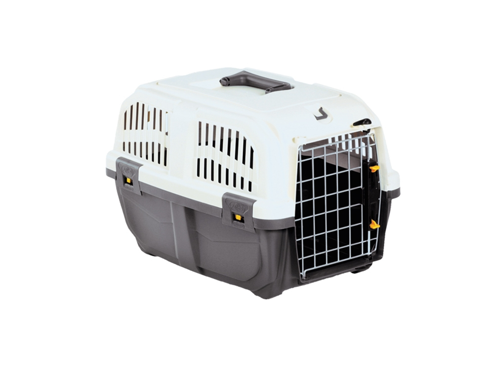 Transporter z plastiku o wymiarach 40x39x60cm dla psów małych i średnich ras lub kotów ( waga do 24 kg). Transporter waży 2 kg i jest akceptowany przez większość linii lotniczych. Metalowe drzwiczki zamykane są na zatrzask. Otwory zapewniają właściwą wentylację.