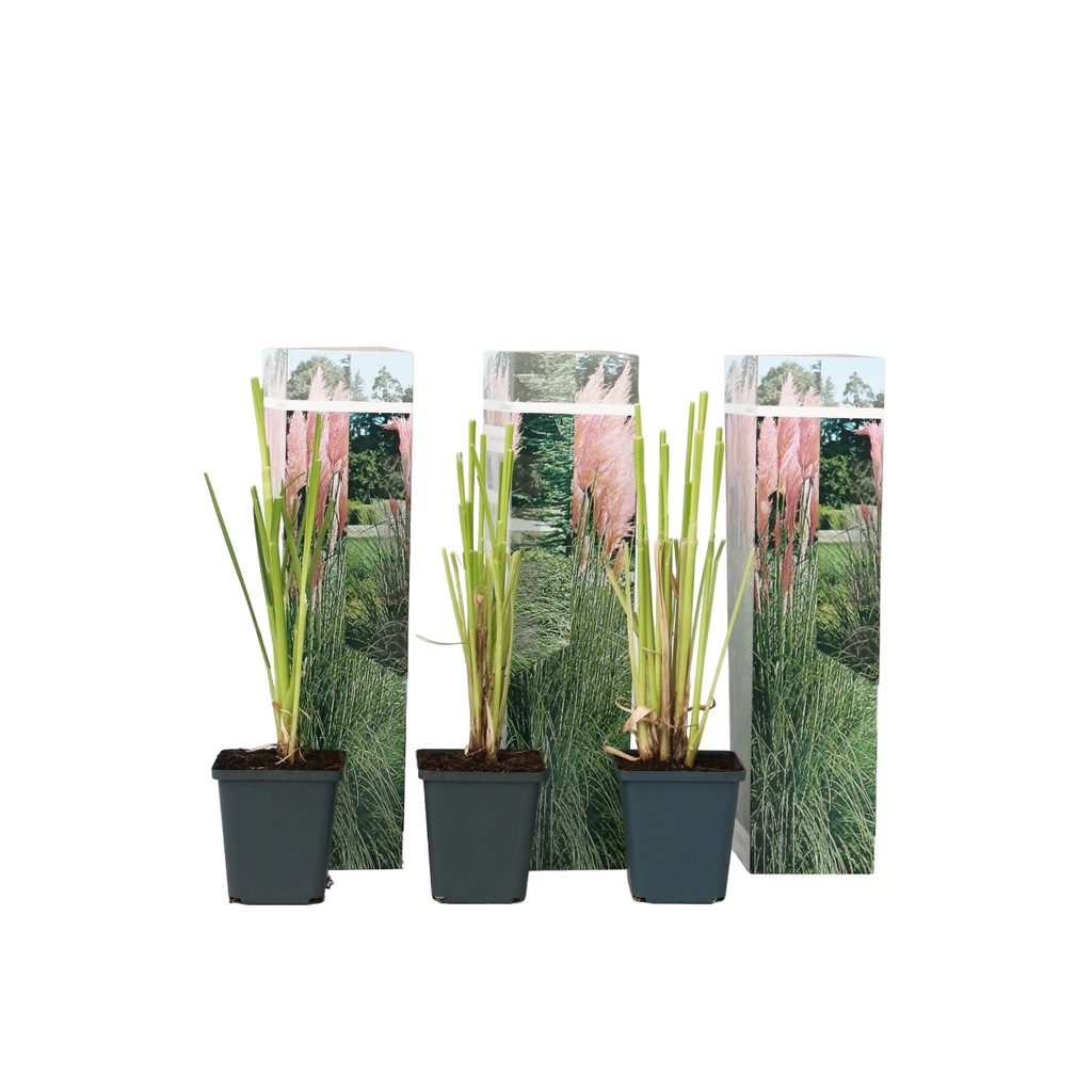 Trawy pampasowe pochodzą z Ameryki Południowej i są uważane za jedne z najpiękniejszych traw ozdobnych. Trawa ta może kwitnąć pięknymi, wydłużonymi pióropuszami w różowym kolorze. Długie, wąskie liście dopełniają wdzięcznego wyglądu tej rośliny. Trawa pampasowa jest wytrzymała do -10 stopni Celsjusza i jest rośliną szybko rosnącą. Ten rodzaj trawy dobrze radzi sobie w obwódkach, ale jest też piękny samodzielnie w dużej donicy. PielęgnacjaTrawa pampasowa może szybko rosnąć i osiągać bardzo duże rozmiary, szczególnie gdy jest sadzona na otwartym terenie. Zaleca się przycinanie trawy pampasowej w lutym lub marcu. Przytnij roślinę do wysokości 30 cm nad ziemią. Ta silna roślina jest zielona nawet zimą. Tylko podczas bardzo surowych zim roślina może zamarznąć nad ziemią. Jeśli tak się stanie, prawie zawsze wykiełkuje ponownie na wiosnę. Rośliny mogą znacznie urosnąć, a długie, wąskie i szczególnie wdzięczne „liście” mogą osiągnąć wysokość 3 metrów. RozmiarWysokość roślin w momencie dostawy wynosi 25-40 cm, mierzona łącznie z doniczką szkółkarską. Rośliny dostarczane są w doniczce szkółkarskiej o średnicy 9 cm.