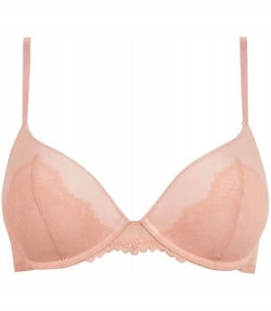 Miseczki pokryte subtelną, kwiecistą koronką i delikatnym tiulem nadają całości elegancji.