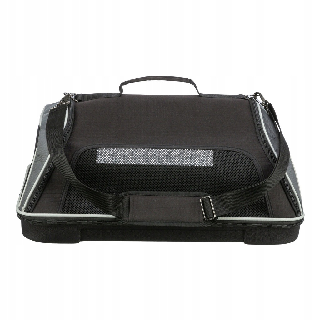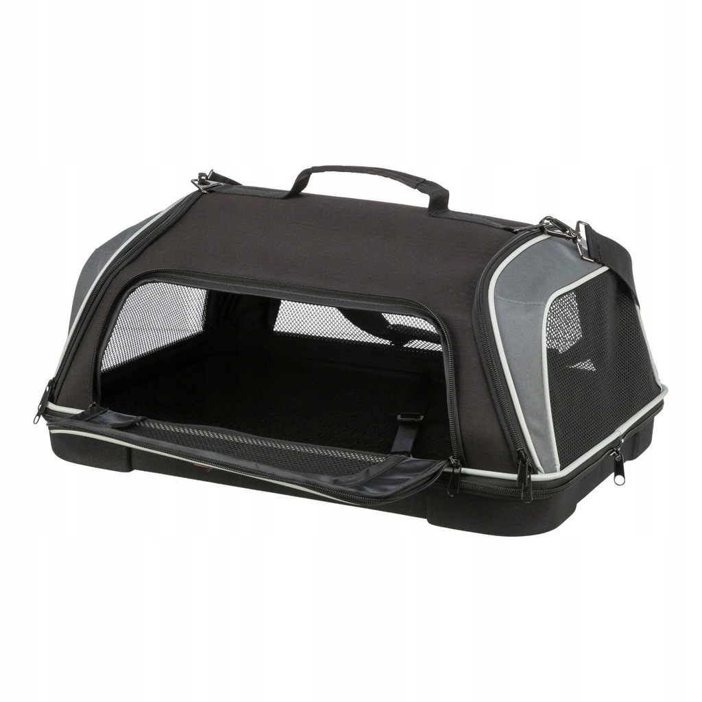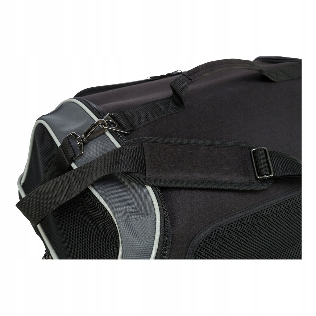 Praktyczne nosidło, które idealnie sprawdzi się jako bagaż podręczny podczas podróży z psem. Torba jest akceptowana przez większość linii lotniczych, co pozwala na podróżowanie ze zwierzęciem w wygodny sposób. Wyposażona jest w obitą i wodoodporną podstawę, którą można zdejmować. Może być otwierana z boku, tyłu i przodu, co ułatwia dostęp do pupila. Dodatkowo posiada regulowany, odpinany pasek na ramię oraz zintegrowaną krótką smycz.