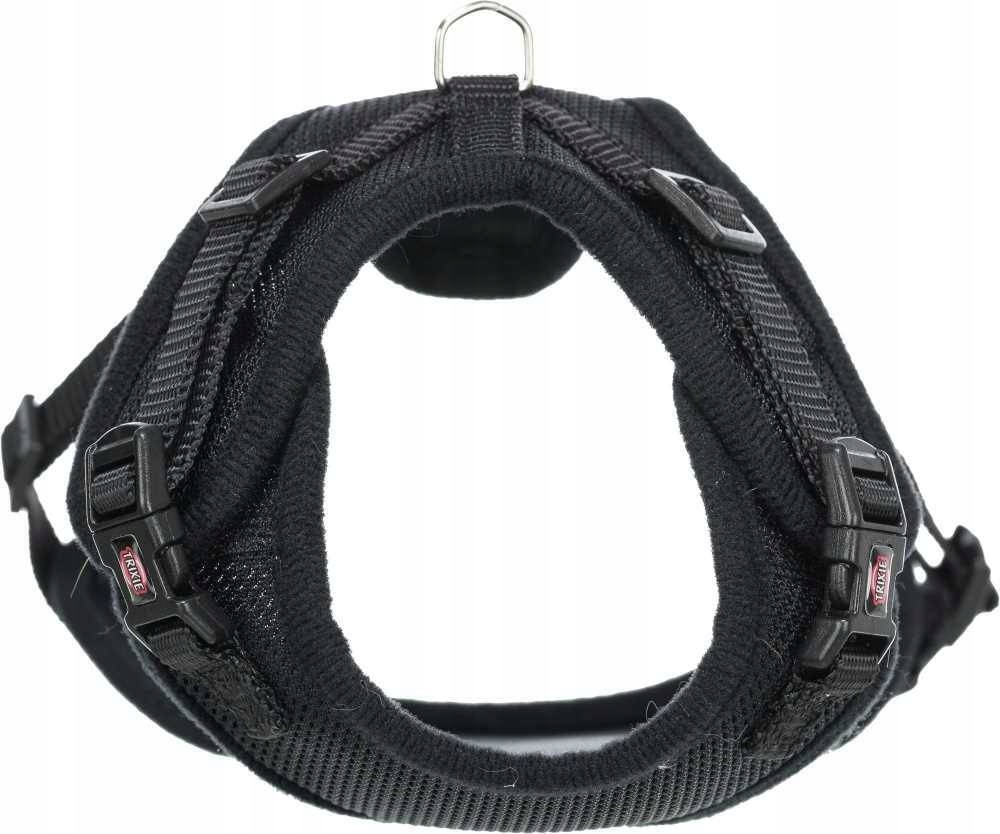- Na wysokości grzbietu szelki wyposażone są w metalowy uchwyt umożliwiający przypięcie smyczy