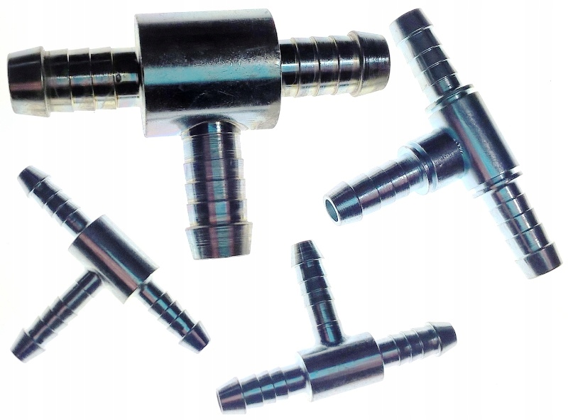 Trójnik metalowy (stal galwanizowana/ocynk), łącznik na paliwo, olej, powietrze, wodę, NA WĄŻ GUMOWY O ŚREDNICY WEWN. 5-6,5mm (5mm ciasno; 6,5 lekko ciasno, wymagana opaska/obejma: 8008.0616) Made In Germany by Cohline GmbH (OEM)