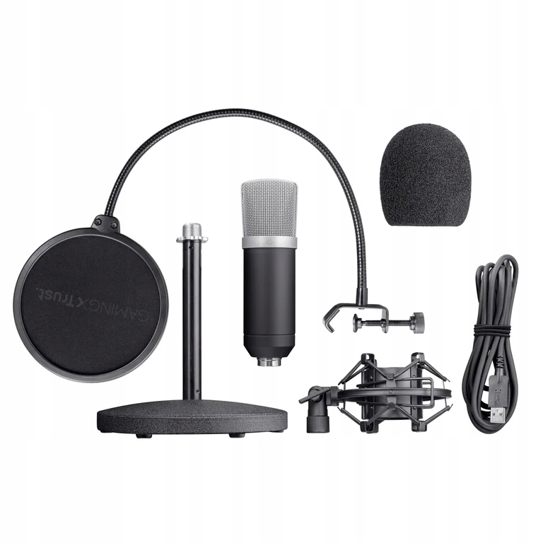 Trust 21753. Model: Mikrofon studyjny, Częstotliwość mikrofonu: 20 - 20000 Hz, Typ kierunku mikrofonu: Kardioid. Technologia łączności: Przewodowa, Interfejs urządzenia: USB. Kolor produktu: Czarny, Długość kabla: 1,8 m, Kraj pochodzenia: Chiny. Źródło zasilania: USB. Średnica: 4,7 cm, Waga mikrofonu: 300 g, Wymiary mikrofonu (GxW): 47 x 160 mm