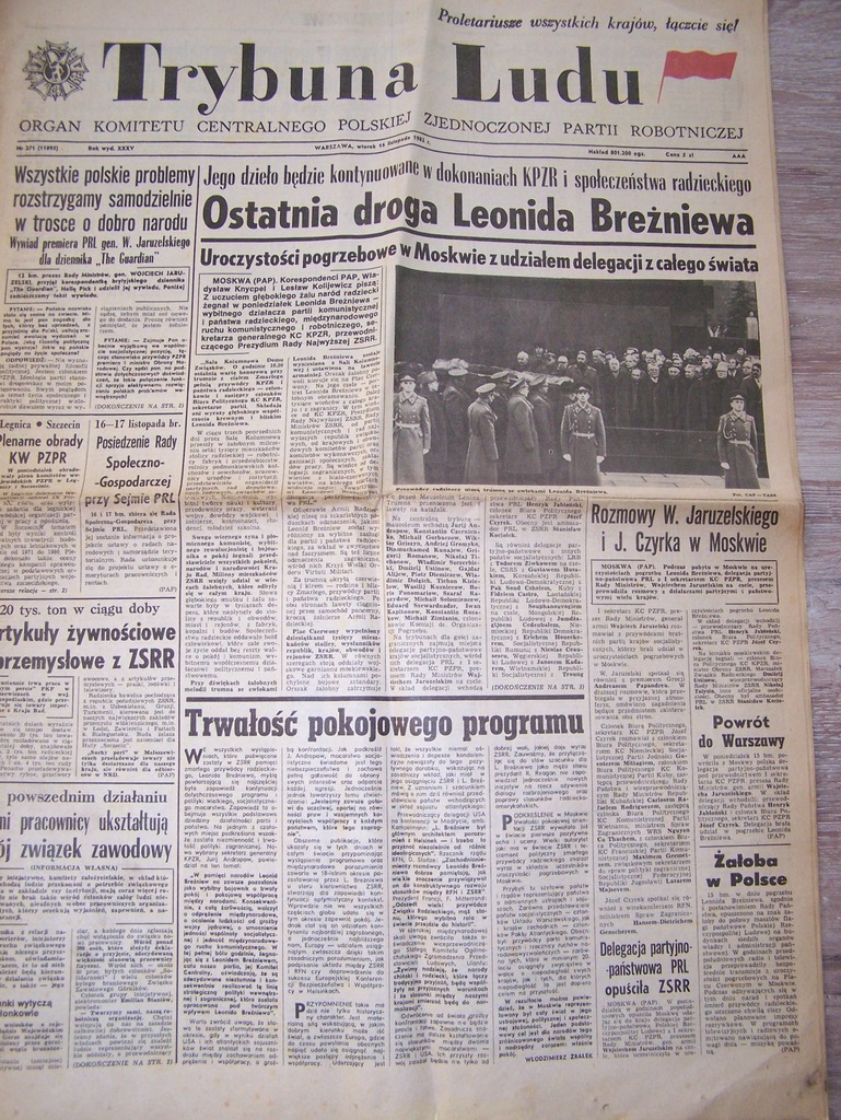 TRYBUNA LUDU - ORGAN KC PZPR Z 16.11.1982 ROKU. (15683014630)