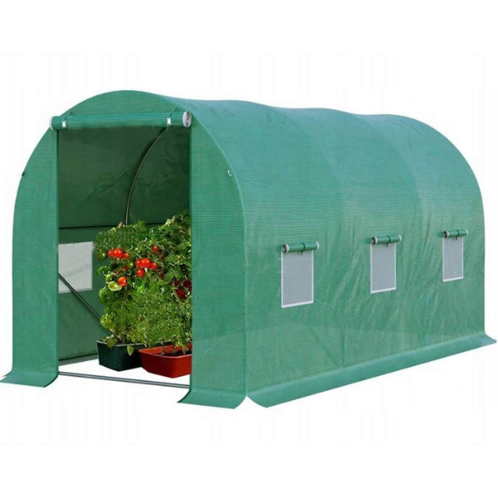 Tunel posiada system cyrkulacji powietrza, który reguluje temperaturę i wilgotność, a szerokie, rolowane drzwi z zatrzaskami zwiększają funkcjonalność. Dzięki temu możesz cieszyć się obfitymi zbiorami przez cały rok, niezależnie od warunków pogodowych.