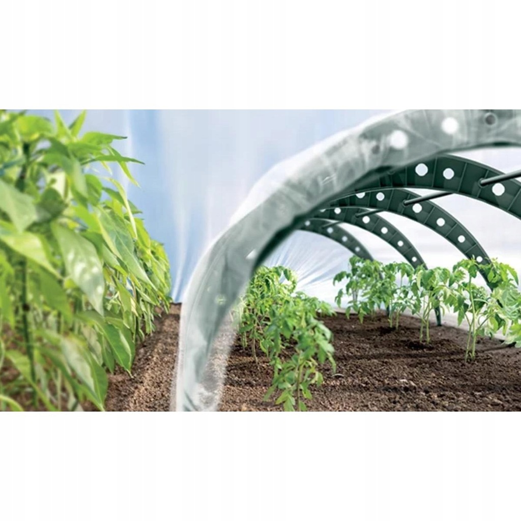 Wyposażony w aluminiowe oczka i śledzie do mocowania folii w podłożu, zapewniają solidne osadzenie jej w ziemi, co gwarantuje stabilność nawet w trudnych warunkach pogodowych. Dobrze przymocowana konstrukcja chroni rośliny przed wiatrem, zapewniając im bezpieczne i optymalne warunki wzrostu przez cały okres użytkowania.