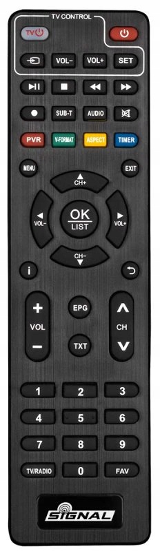 - Pilot dekodera SIGNAL potwierdzi zapisanie sygnału mrugając diodą TV: jedno długie a następnie dwa szybkie mrugnięcia. Potem dioda TV zacznie świecić w sposób ciągły.