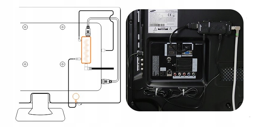 Dodatkowo bardzo małe rozmiary urządzenia pozwalają nam na powieszenie tunera za telewizorem a dioda odbiorcza na przewodzie zakończona portem mini USB pozwala na bezproblemowe sterowanie urządzeniem. Zasilanie 5V pozwala na podłączenie go do portu USB w naszym TV, dzięki takiemu rozwiązaniu nie potrzebujemy dodatkowego gniazdka na 230V!