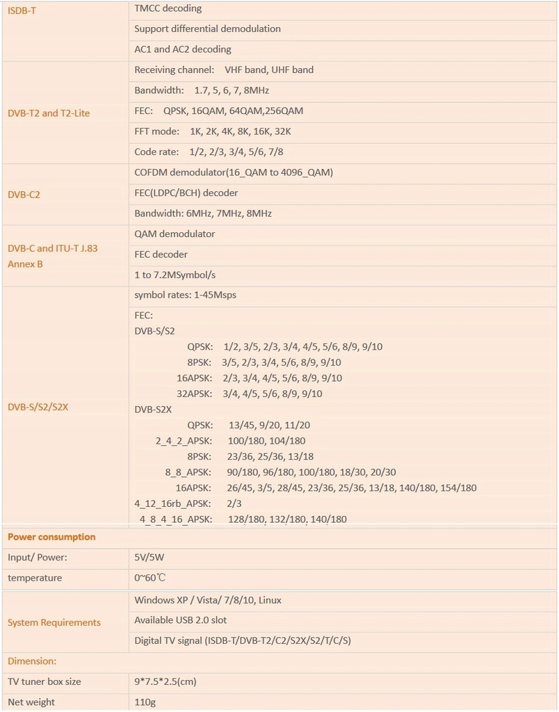 Do sprzedania mam tuner telewizyjny renomowanej firmy TBS który obsługuje mulit standardy tzn. zarówno TV naziemną jak i kablową oraz satelitarną. Tuner obsługuje standardy DVB-S2X/S2/S/T2/T/C2/C/ISDB-T. Tuner używany zakupiony kilka miesięcy temu na allegro, używany może w sumie kilka godzin, po czym wylądował w szafie. TV satelitarna tylko FTA (free-to-air) czyli kanały niekodowane (brak złącza CI/CI+) Kabel oryginalny w komplecie.