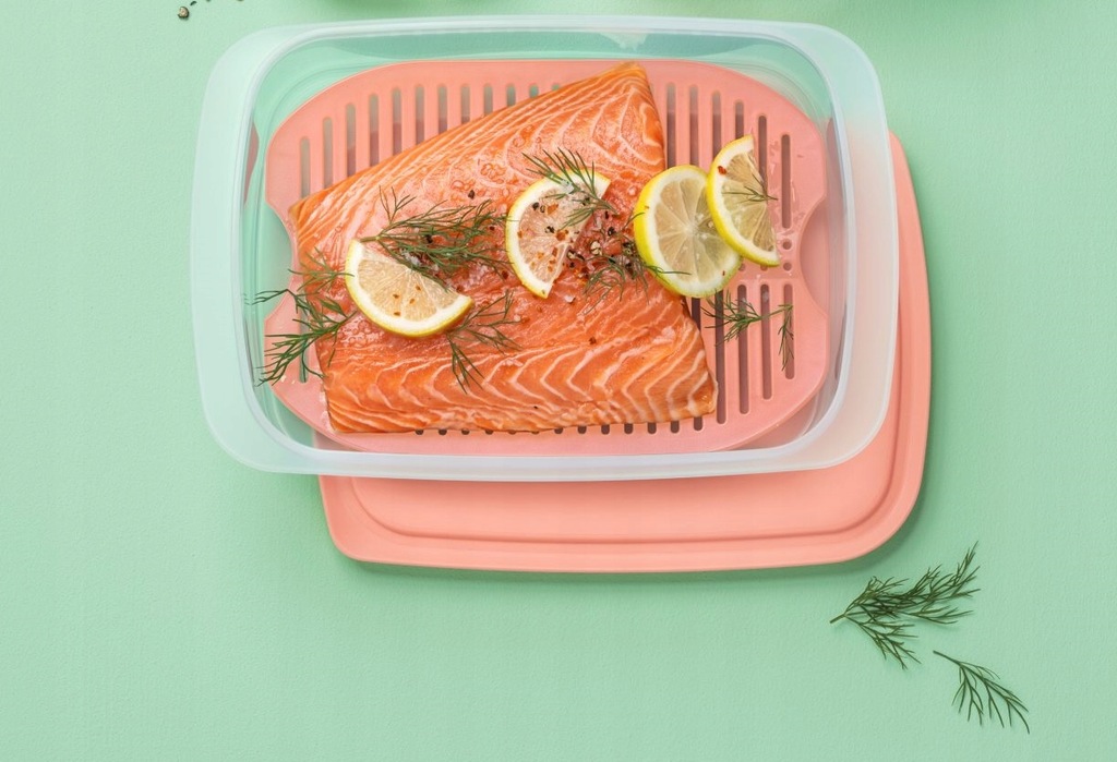 Zestaw składa się z pojemnika OPTIMA o pojemności 1,5 litra, zamknięcia oraz rusztu. Pojemnik o pojemności 1,5 l jest idealny na świeże kiełbasy i produkty mięsne, kiełbasy, kabanosy i sery. Dzięki świeżej kratce Twoje jedzenie jest smaczne i suche. Dzięki temu mięso lub kiełbasa pozostają świeże podczas transportu. Możesz również użyć pojemnika jako pojemnika na bułkę tartą. Przechowuj panierowane sznycle w lodówce, aż będą gotowe do gotowania.