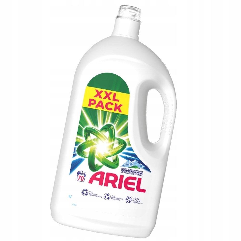 ⭐ Płyn do prania ARIEL Mountain Spring Clean Fresh 70 prań 3,5 l o pojemności 3,5 litra oferuje możliwość wykonania 70 cykli prania. Jest to produkt stworzony specjalnie do prania ubrań w jasnym i białym kolorze, zapewniając skuteczne czyszczenie i ochronę.