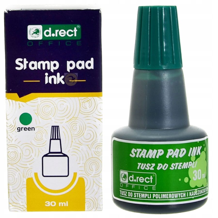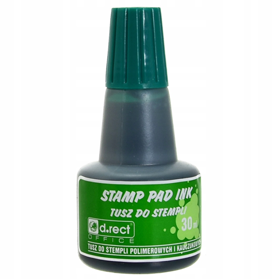 Tusz wodny D.RECT o intensywnym, nieblaknącym kolorze. Do stosowania w pieczątkach ręcznych i samotuszujących z kauczukowych (gumową) lub polimerową płytką stemplującą. Niezbędny w każdym biurze. Tusz po wyschnięciu nie rozpuszcza się w wodzie. Pojemność: 30 ml. Dostępny w kolorze zielonym. Jednostka sprzedaży: 1 sztuka.