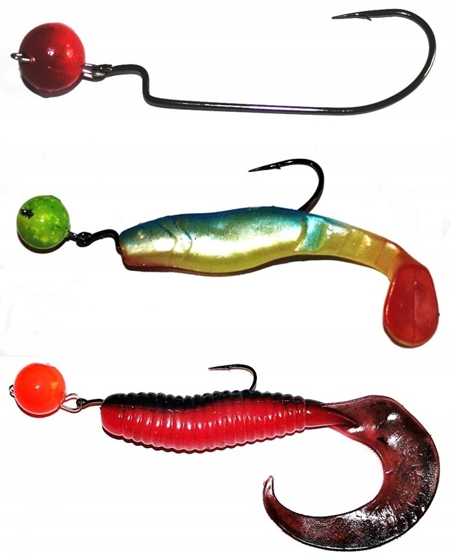 CZEBURASZKI I HACZYKI OFFSETOWE STOSUJEMY DO ZBROJENIA WSZELKIEGO RODZAJU GUMEK TAKICH JAK MANDULE , TWISTERY , RIPPERY , ŻABY , JASKÓŁKI , ITP. PRZYNĘTĘ UZBROJONĄ W HAK I CZEBURASZKĘ ŁĄCZYMY Z PRZYPONEM ZA POMOCĄ KRĘTLIKA Z AGRAFKĄ.