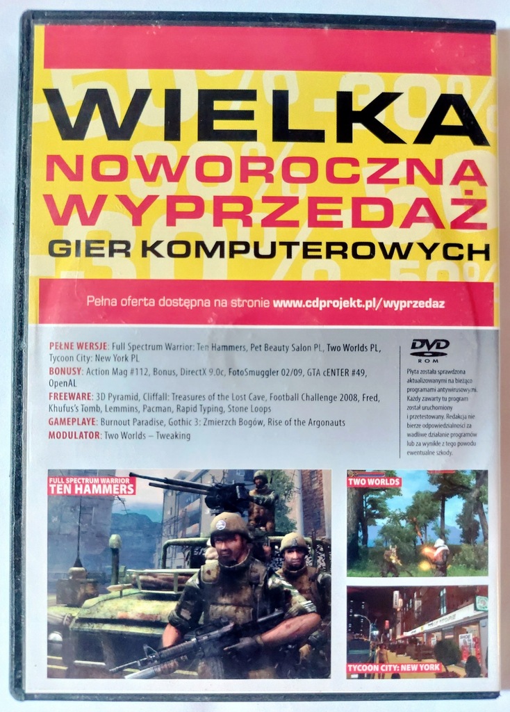 Wszystkie sprzedawane przeze mnie płyty z grami są w pełni sprawne i nadają się do dalszego użytku. Nie zacinają się, nie ma żadnych problemów z ich instalacją, i nie ma z nimi żadnych innych, nawet najmniejszych problemów. Przed wystawianiem na sprzedaż wszystkie gry są testowane. Z wyłączeniem gier nowych, w folii. Tych nie rozpakowuję.