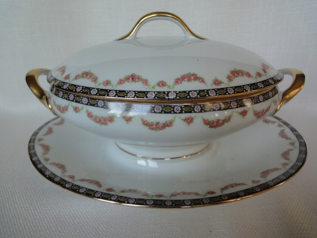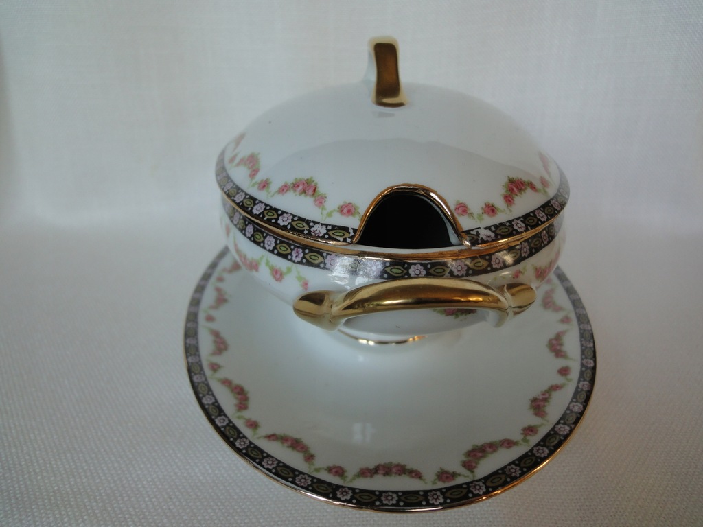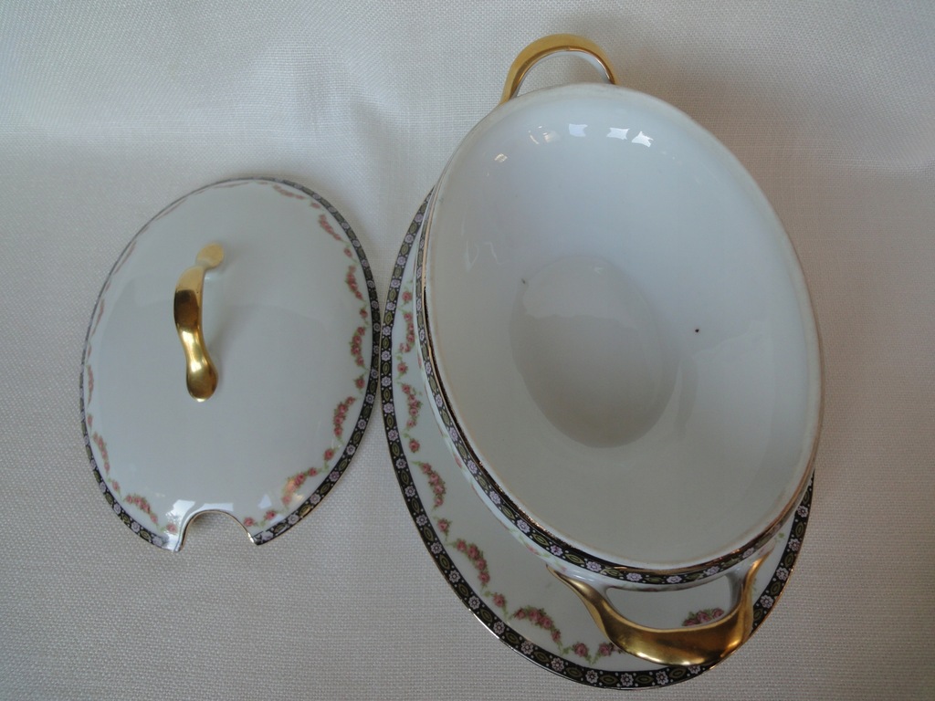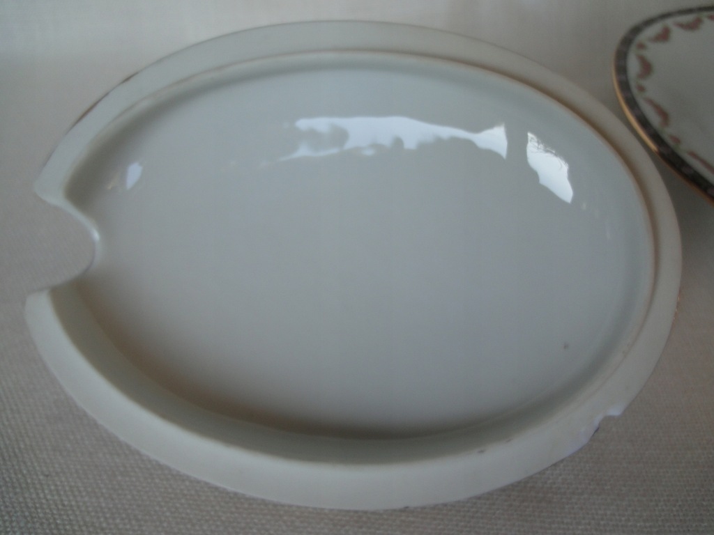 wys. 11,5 cm dł. 20 cm, szer. 11,2 cm, podstawka dł. 21,2 cm, szer. 14,5 cm - przykrywka ma uszczerbienie - zdj
