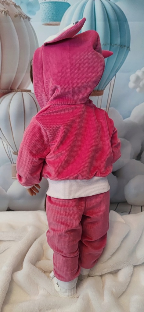 ✨Dwu częściowy dres z velvetu. Bluza z kapturem i spodnie z kieszeniami dla Lalki Reborn o wys. 55cm. Handmade!