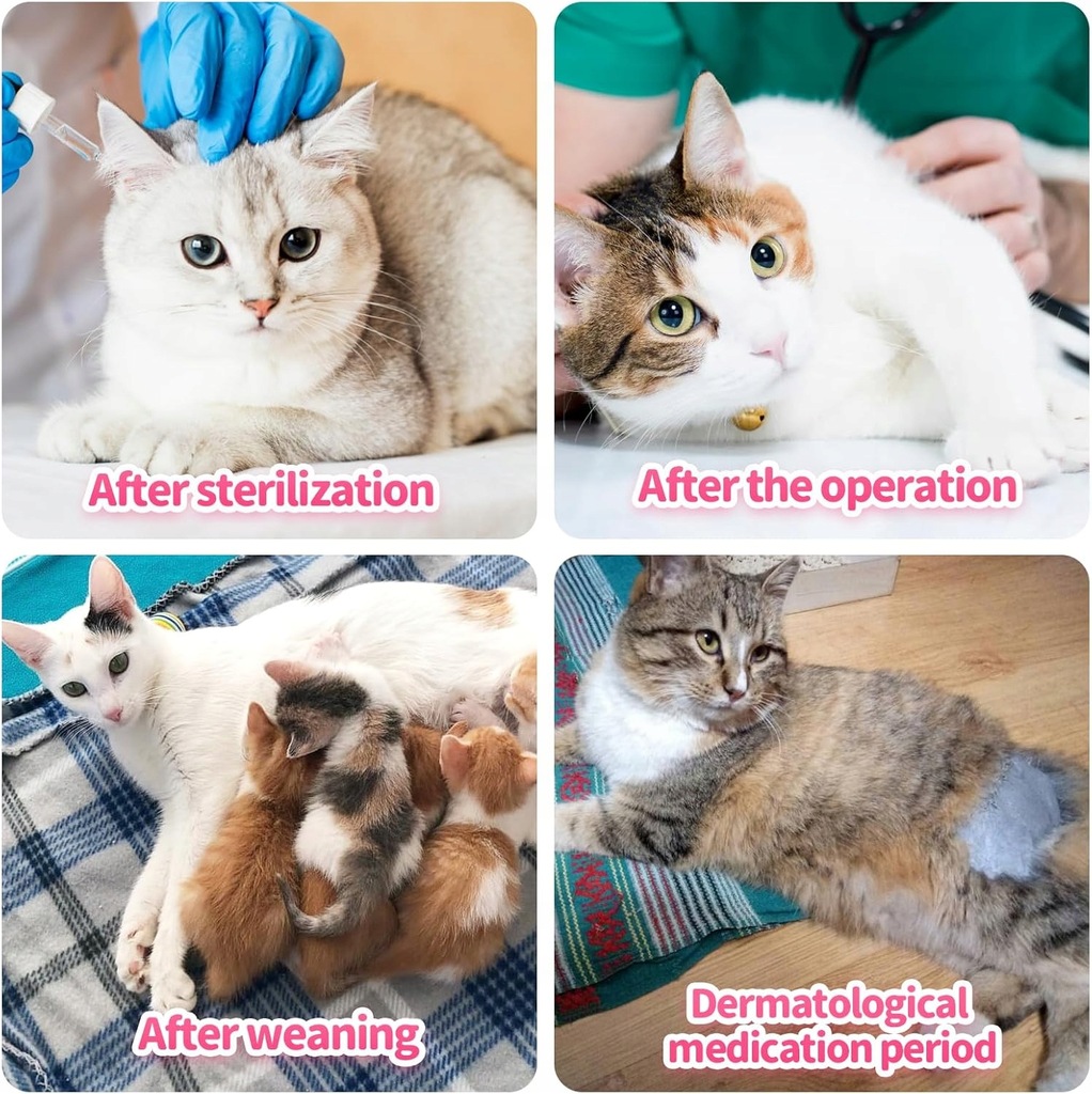 ELASTYCZNY DEKOLT I ZAPIĘCIE: dzięki regulowanemu kołnierzowi kamizelka chirurgiczna dla kotów jest wygodniejsza i nie uciska. Łatwo ją założyć i zdjąć. Koszulka dla kota medycznego ułatwi Ci opiekę nad Twoim pupilem!
