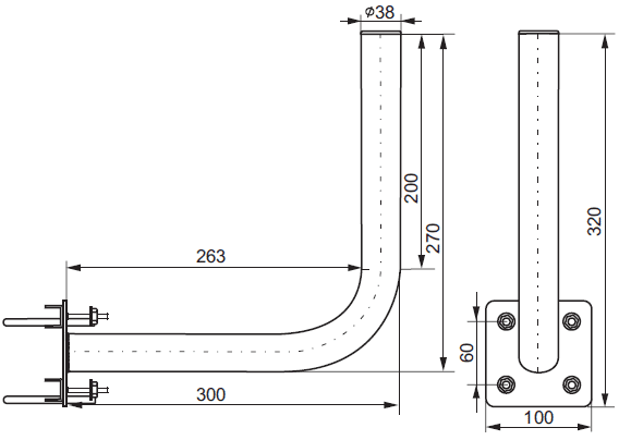 Uchwyt balkonowy z płytką czołową UBC-38/300-Z OCYNKOWANY OGNIOWO