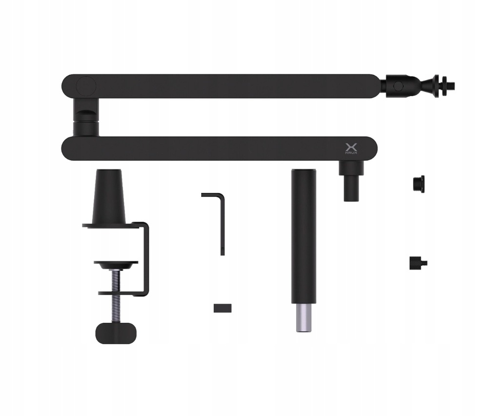W pakiecie z ramieniem znajdziesz też cały zestaw gadżetów i akcesoriów, którego nie powstydziłby się nawet Solid Snake. Inny gwint w mikrofonie czy uchwycie na telefon albo aparat? Nie ma problemu, w zestawie są dwa adaptery (3/8” – 5/8” oraz 3/8” – 1/4”). Często zmieniasz pozycję ramienia? Przyklej magnes w wygodnym dla Ciebie miejscu i trzymaj klucz regulujący pod ręką. Nie zagnie Cię nic.
