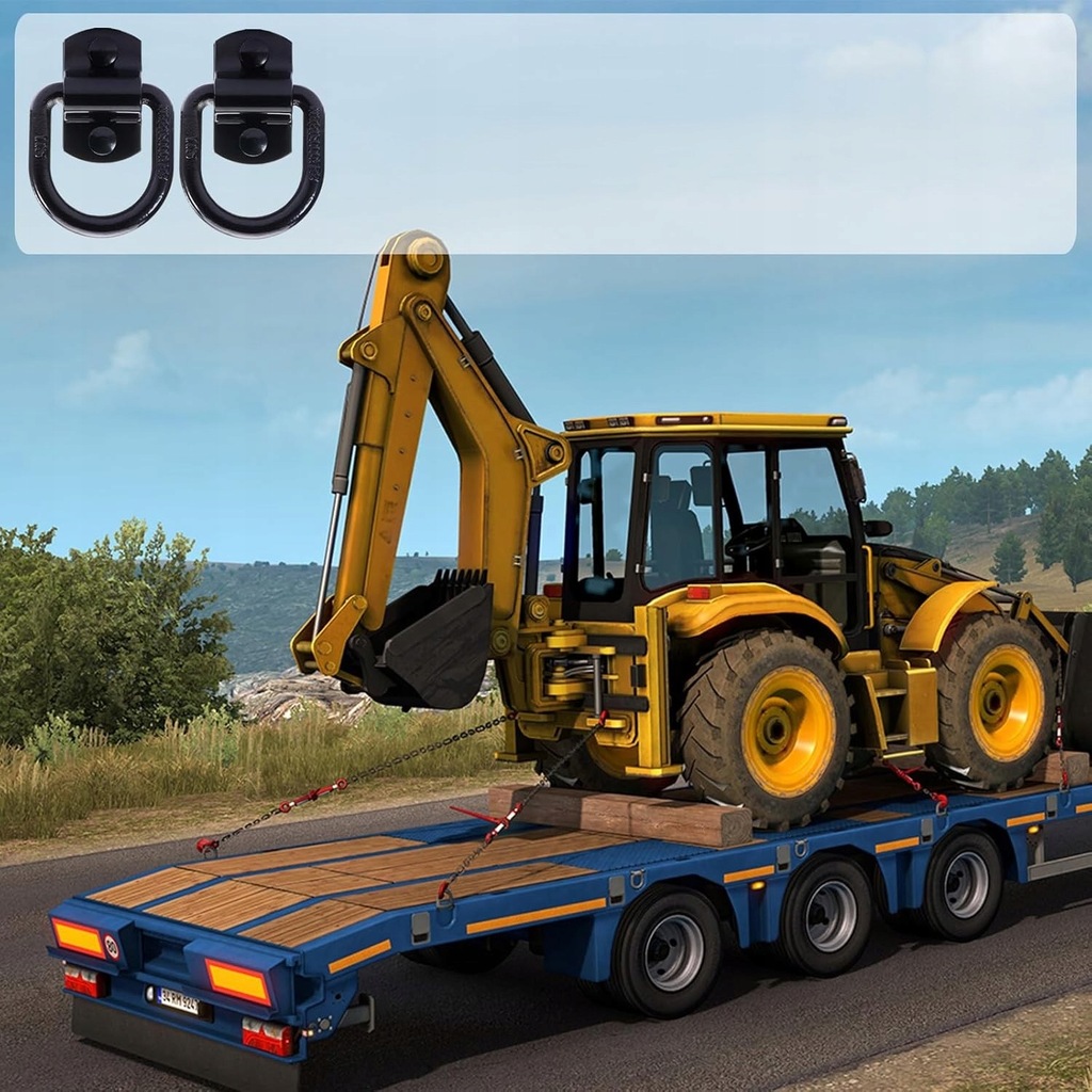 ➡️ Pierścienie mocujące i haki D : działaniee w dwa mocne pierścienie oraz haki w postaciach D, które występują mocowanie w odpowiednim pojeździe.