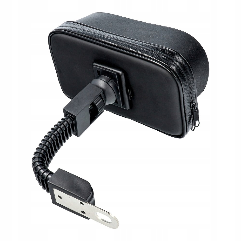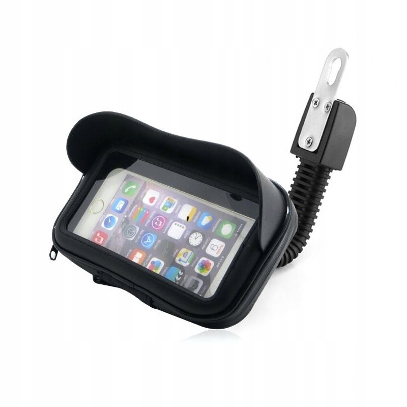 Uchwyt motocyklowy na kierownicę z daszkiem. Zapinany na zamek błyskawiczny. Zapewnia bezpieczeństwo korzystania ze smartfona w trakcie jazdy motocyklem lub skuterem. Mocowany do ramy motocyklowej. Produkt jest kompatybilny z urządzeniami mobilnymi 5.5-6.3″.