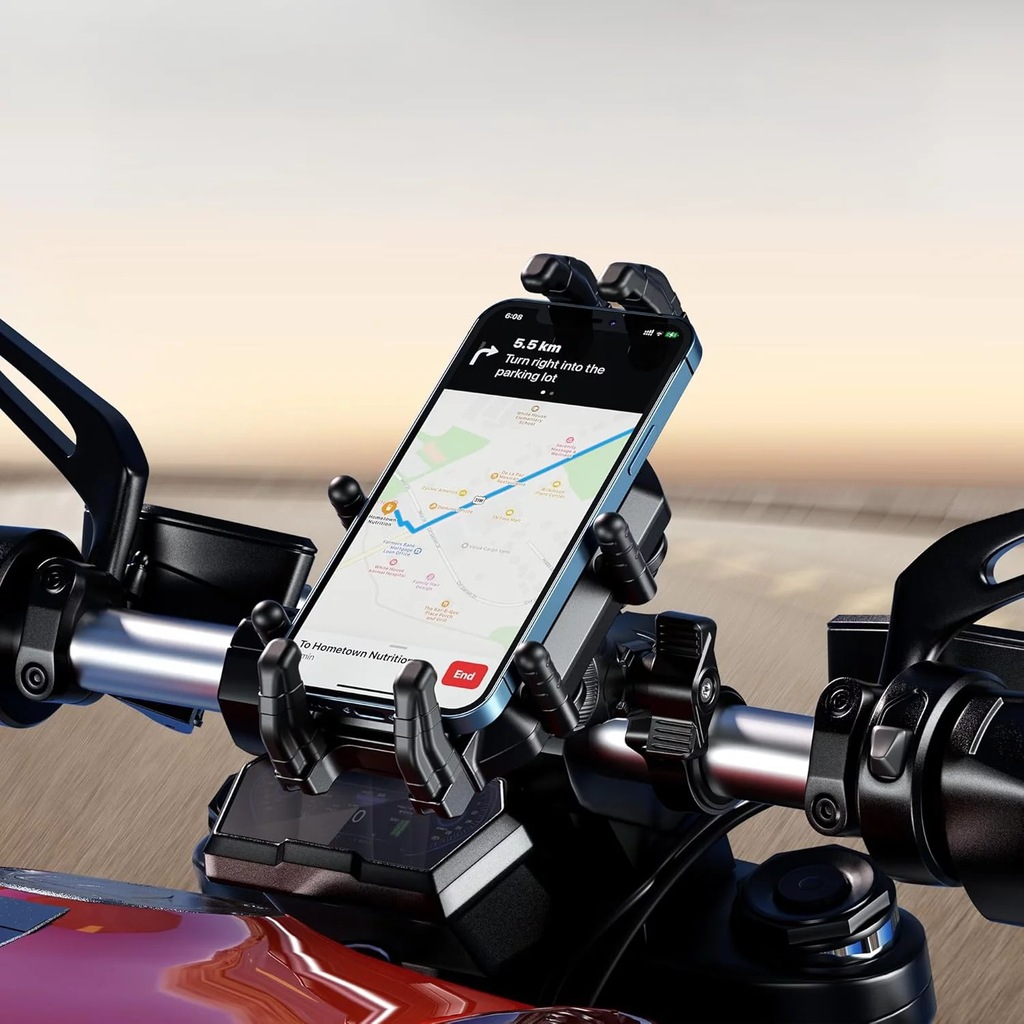 ✅ Skup się na jeździe i miej smartfon zawsze w zasięgu wzroku – system przeciwwstrząsowy oraz solidna blokada zapewniają pewność trzymania, nawet przy dynamicznych manewrach.