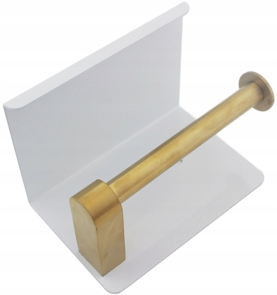 - Biało-złoty, stalowy uchwyt na papier toaletowy w stylu loft.