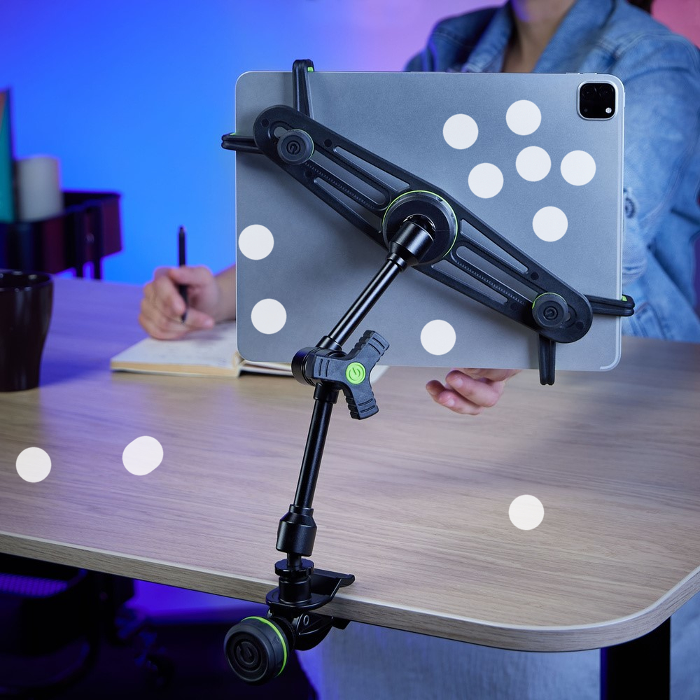 Tablety są wszechstronne i stanowią część codziennego wyposażenia nie tylko w życiu zawodowym i prywatnym, ale także w studiu i na scenie na żywo. Jako muzyk, DJ, podcaster lub producent, równie praktyczny jak tablet z niezliczoną liczbą aplikacji, szybko pojawia się pytanie: jak zamocować i ustawić tablet, aby zintegrować wszechstronnego pomocnika z moją pracą tak elastycznie i bezstresowo, jak możliwy?