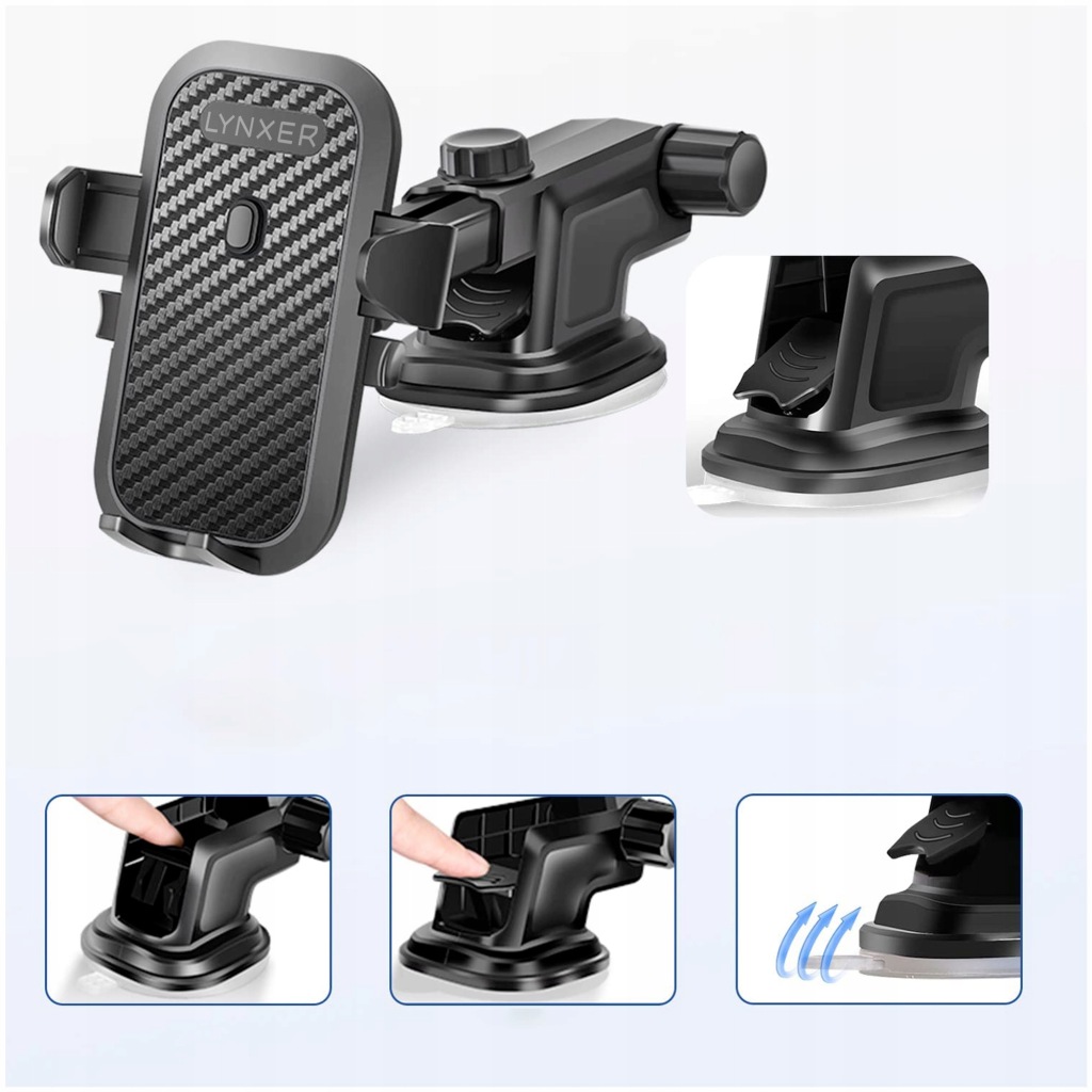 Posiadając uchwyt Lynxer nie musisz martwić się gdzie możesz zamontować uchwyt, ponieważ model ten jest wielofunkcyjny i można go założyć na kratkę nawiewu, kokpit albo szybę.