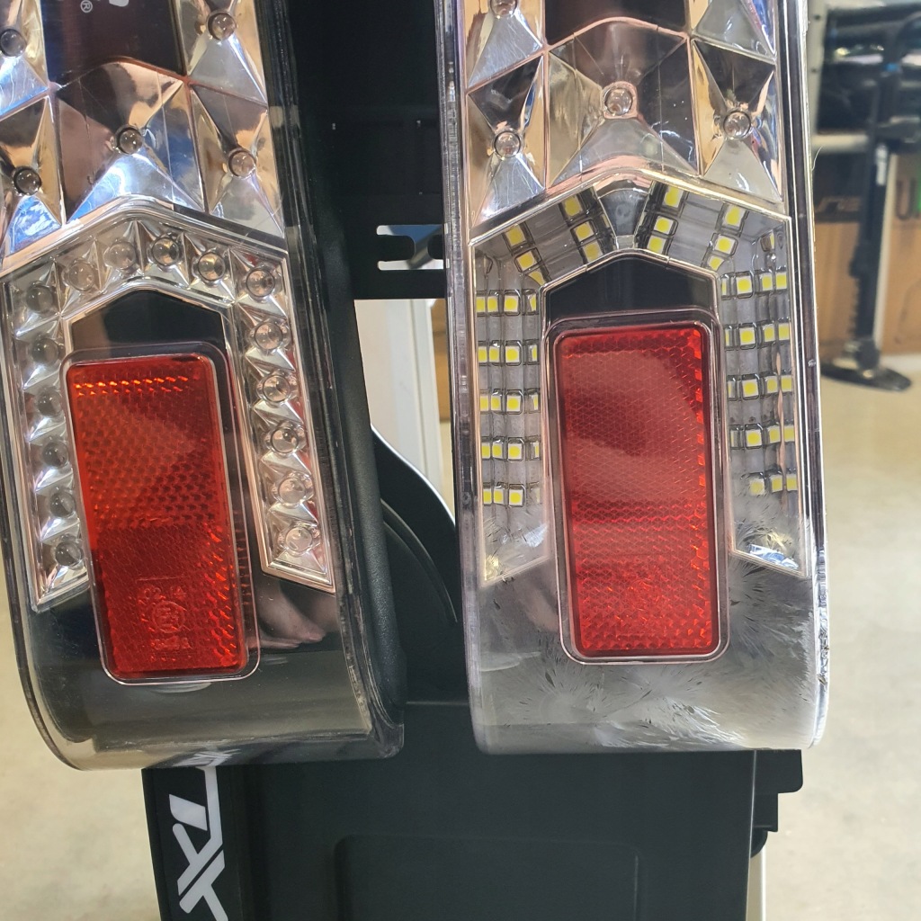 - Bagażnik posiada plamki na lampach (widoczne na zdjęciu) dlatego jest przeceniony. plamki nie wpływają na funkcjonowanie lamp.