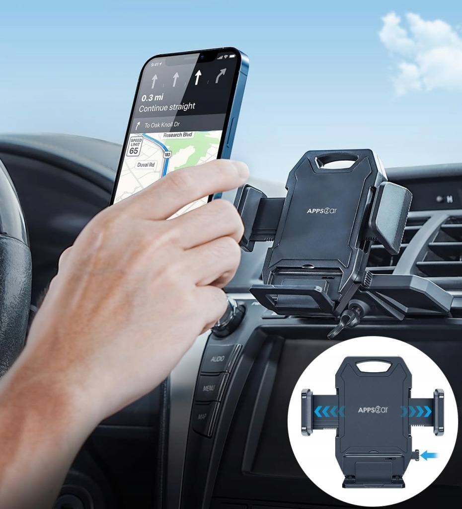 Uchwyt samochodowy APPS2Car zabezpiecza Twój telefon z trzech stron – dwoma regulowanymi ramionami i składanym dolnym wspornikiem. Dodatkowo, dzięki śrubowemu mocowaniu w szczelinie CD, gwarantuje stabilność nawet podczas jazdy po nierównych drogach.